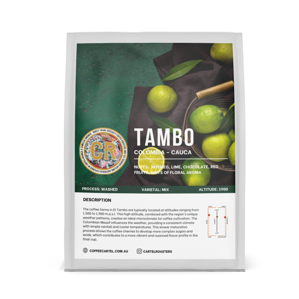 The coffee farms in El Tambo are typically located at altitudes ranging from 1,500 to 1,900 m.a.s.l. This high altitude, combined with the region’s unique weather patterns, creates an ideal microclimate for coffee cultivation. The Colombian Massif influences the weather, providing a consistent climate with ample rainfall and cooler temperatures. This slower maturation process allows the coffee cherries to develop more complex sugars and acids, which contributes to a more vibrant and nuanced flavor profile in the final cup.