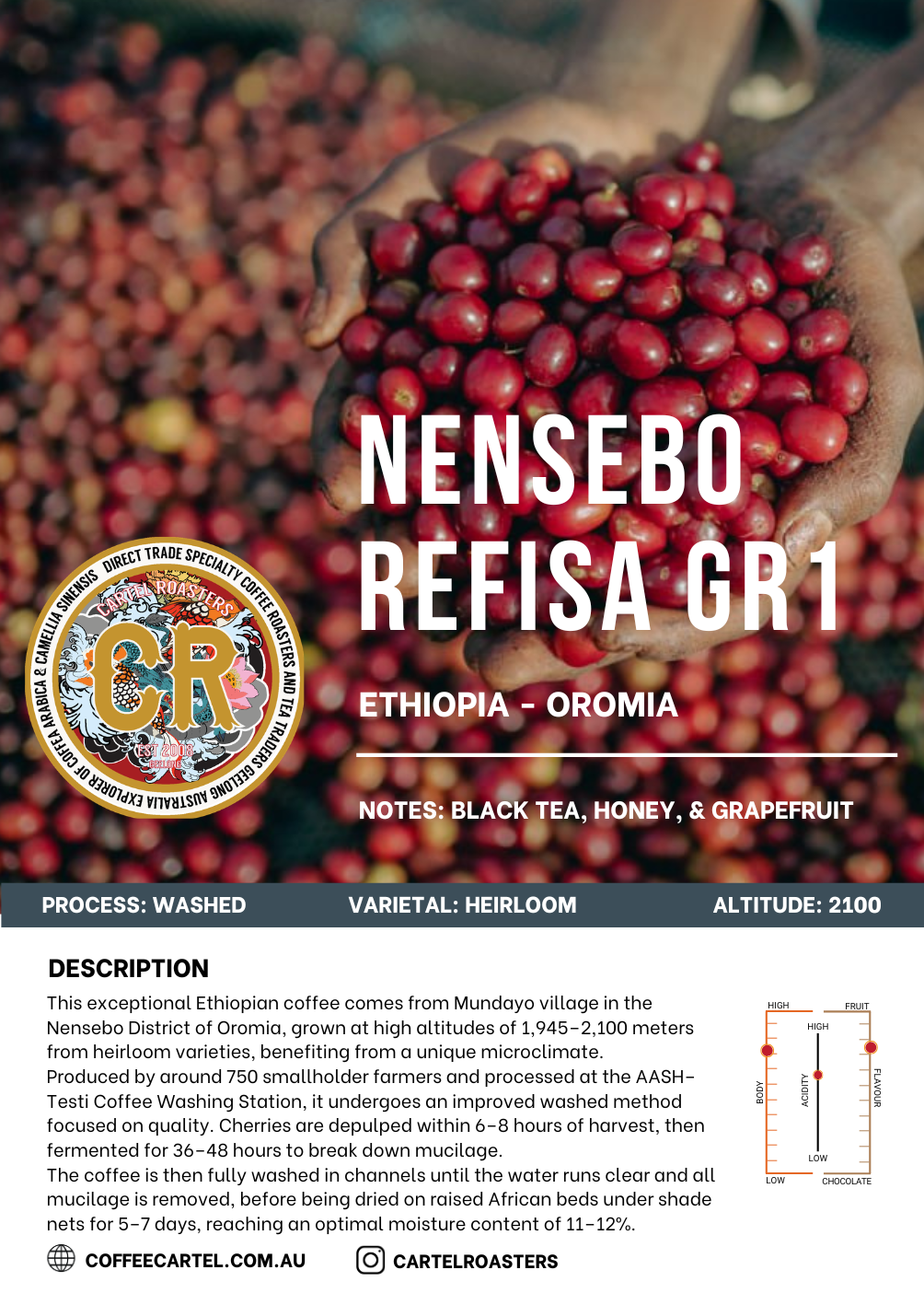 This specific lot undergoes an improved washed process, a meticulously executed method designed to enhance the inherent characteristics of the coffee.