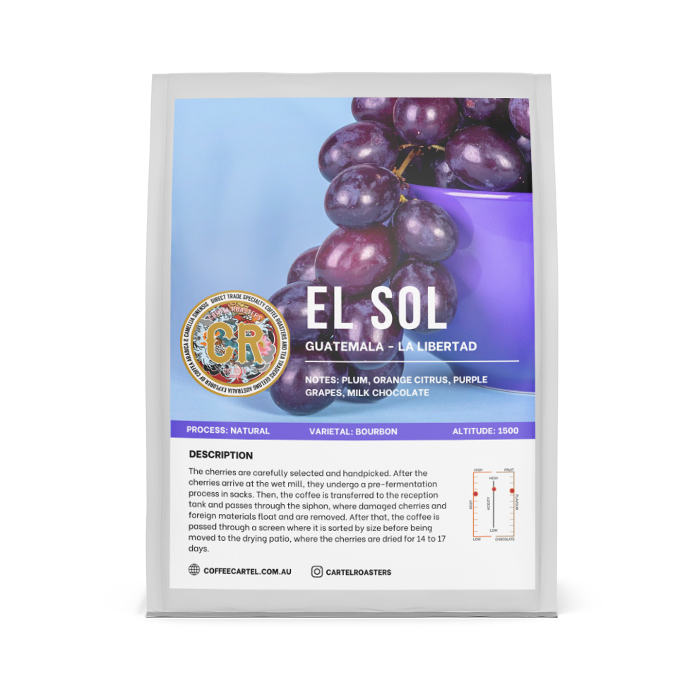 The cherries are carefully selected and handpicked. After the cherries arrive at the wet mill, they undergo a pre-fermentation process in sacks. Then, the coffee is transferred to the reception tank and passes through the siphon, where damaged cherries and foreign materials float and are removed. After that, the coffee is passed through a screen where it is sorted by size before being moved to the drying patio, where the cherries are dried for 14 to 17 days.