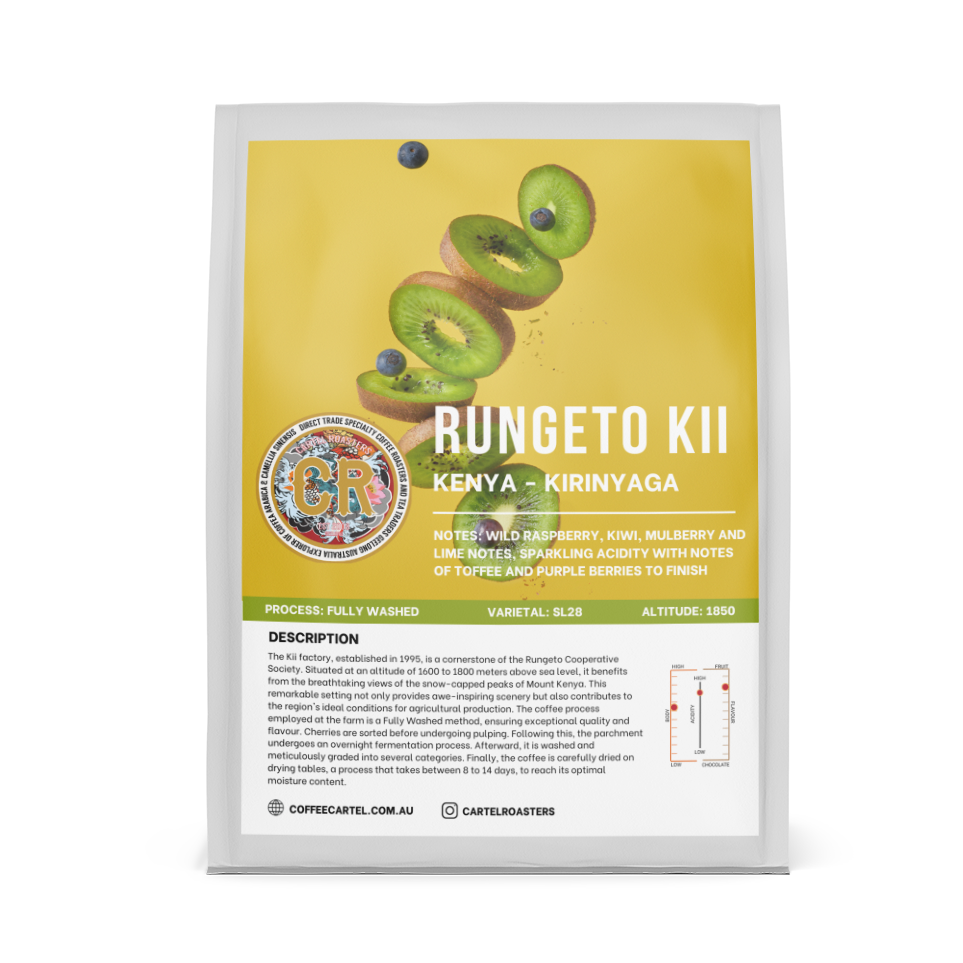 fertile lands of Kenya, this coffee is the result of the dedication and expertise of the Rungeto Cooperative Society.