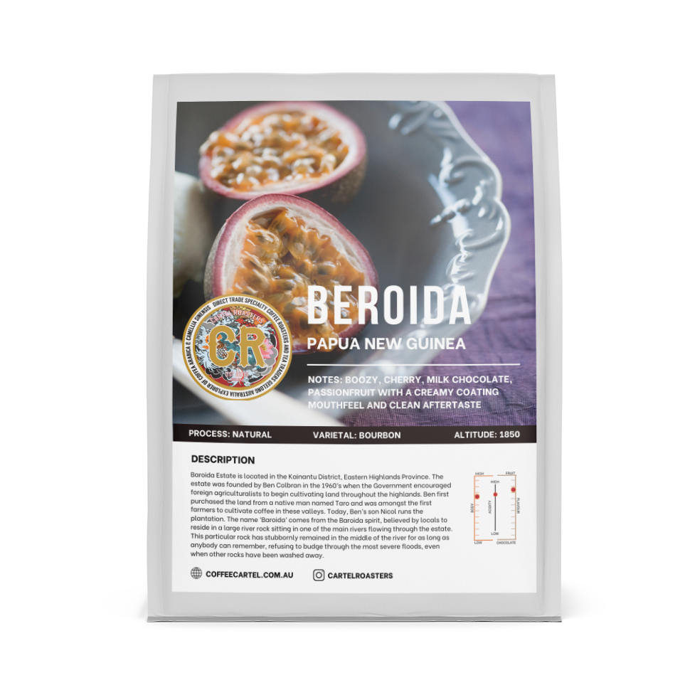 Baroida Estate is located in the Kainantu District, Eastern Highlands Province. The estate was founded by Ben Colbran in the 1960’s when the Government encouraged foreign agriculturalists to begin cultivating land throughout the highlands. Ben first purchased the land from a native man named Taro and was amongst the first farmers to cultivate coffee in these valleys. Today, Ben’s son Nicol runs the plantation.